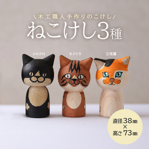 ねこけし 計3個 (シロクロ、キジトラ、三毛猫 各1個) <1個当たり> 直径38×73㎜ 重さ30g