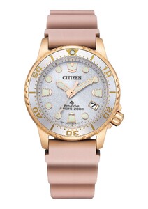 ○製品スペック 商品番号 EO2023-00A キャリバーNo. E168 動力 光発電エコ・ドライブ 精度 ±15秒/月 持続時間 光発電約6か月 重量 65g 厚み 11.6mm ケースサイズ 横36.5mm ケース素材 ステンレス ケース表面処理 めっき(ウォームゴールド色) バンド素材・タイプ ウレタン・美錠タイプ バンド幅 18.0mm バンド調整可能サイズ 130~200mm ガラス クリスタルガラス 防水性能 200m潜水用防水 耐磁性能 耐磁1種 デザイン特徴 逆回転防止ベゼル、ねじロックりゅうず、夜光(針+インデックス) 機能 充電警告機能、過充電防止機能、クイックスタート機能、フル充電時約6ヶ月可動、日付表示、日付早修正機能、衝撃検知機能 メーカー保証 1年間メーカー保証(MY CITIZENご登録により2年間)