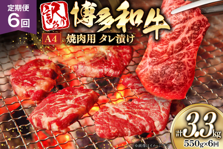 訳あり 牛肉 博多和牛 A4 ランク 焼肉用 タレ漬け 550g 6回 定期便 [木村食品 福岡県 筑紫野市 21761188]
