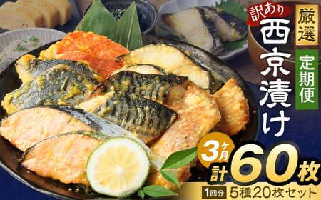【3ヶ月定期便】訳あり 厳選 西京漬け おまかせ5種 20枚セット