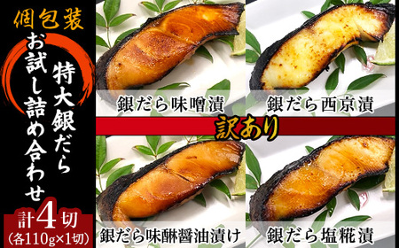 H7-C4【訳あり】個包装特大銀だら4切 お試し詰め合わせ
