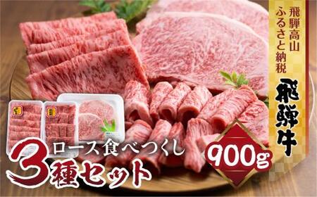 飛騨牛 ロース 食べつくしセット 900g (ステーキ /焼肉 薄切り すき焼き / しゃぶしゃぶ ) 食べ比べ 霜降り 飛騨高山 山武商店 LZ007