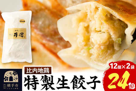 ■名称:冷凍餃子 ■内容量:12個入り×2袋 ■原材料名:【具】比内地鶏(秋田県産)、キャベツ(秋田県産、愛知県産、その他国内産)、玉ねぎ(秋田県産、北海道産、その他国内産)、ニンニク(秋田県産、青森県産)、生姜(高知県産)、醤油(小麦・大豆を含む)、ゴマ油、砂糖、酒、食塩、胡椒、昆布、椎茸、比内地鶏スープ/調味料(アミノ酸等) 【皮】小麦粉、植物油、食塩/加工でん粉、酒精、酸味料(一部に小麦・大豆・豚肉・鶏肉・ごまを含む) ■保存方法:要冷凍(-18℃以下で保存してください) ■賞味期限:製造日から約6ヶ月 ■注意事項: ・冷凍前加熱の有無: 加熱しておりません ・加熱調理の必要性: 加熱してお召し上がりください ※ふるさと納税(寄附申込み)のキャンセル、返礼品の変更・返品はお受けできません。あらかじめご了承ください。 ■提供元:株式会社芹澤 ■アレルギー:小麦、大豆、豚肉、鶏肉、ごま ■地場産品に該当する理由:横手市内において本返礼品の原材料の調達から製造・加工等に係る全ての工程を行うことにより、相応の付加価値が生じているものであるため。(告示第5条第3号に該当)