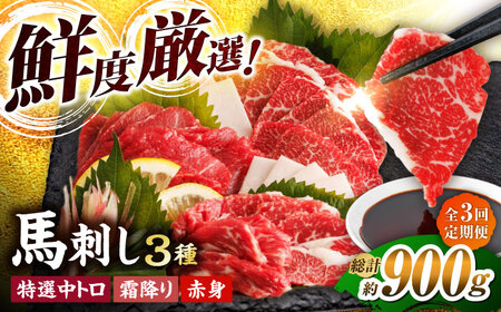 【3回定期便】馬刺し バラエティセット 3種類 3・4人前 +タレ小【馬刺しの郷 民守】馬肉 熊本県 特産品 [ZBL048]