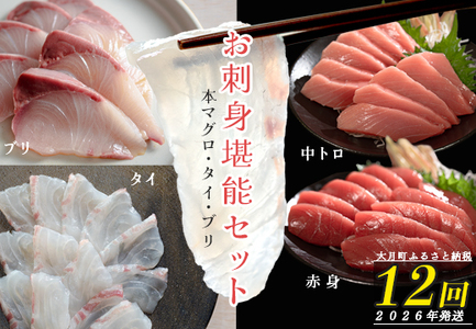 【定期便 12回】本マグロ・タイ・ブリ お刺身堪能セット