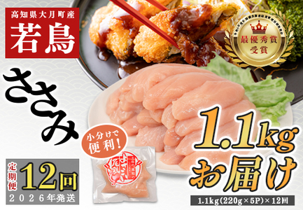 【定期便 12回】よさこい尾鶏 ささみ 1.1kg(220g×5パック)