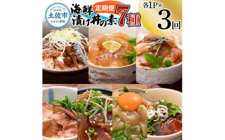 【3回定期便】海鮮漬け丼の素(7種×各1P)セット サバ 鯖 タイ 鯛 ブリ 鰤 カンパチ マグロ 鮪 イカ カツオ 鰹 たたき 海鮮丼 新鮮 魚 おかず おつまみ 惣菜 小分け 簡単 お取り寄せ