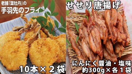 手羽先フライ:約55g×10本×2袋 とりタレ:50ml×2本 鶏せせりの唐揚げ(にんにく醤油味):約300g×1袋 鶏せせりの唐揚げ(塩味):約300g×1袋