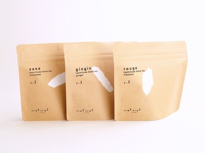 ブレンドティー3種 各ティーバッグ×7p ◎zasa ザサ(1pあたり2.3g、合計16.1g) ◎gingin ジンジン(1pあたり2.7g、合計18.9g) ◎rouge ルージュ(1pあたり3.1g、合計21.7g)