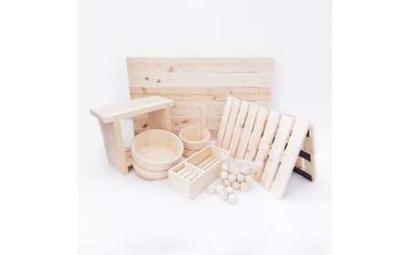 ・シャンプー台&石けん台 (300×130×100) × 1 ・桧風呂いす特大 (300×180×300) × 1 ・桧片手桶 (170×110 (240 *柄を含む)) × 1 ・桧湯桶大 (240×110) × 1 ・釘なしすのこ 7 (850×590×39) × 1 ・折りたたみすのこ (350×600×210) × 1 ・バスボール (直径35) × 20