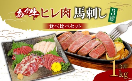 あか牛 ヒレ肉 800g (6枚前後)・ 馬刺し 200g ( 赤身 100g 霜降り 50g たてがみ 50g) 食べ比べ セット