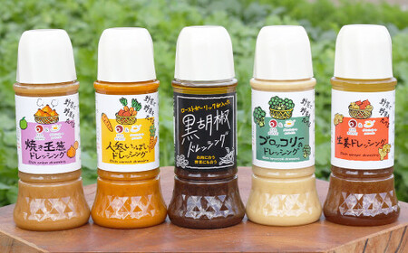 ・焼き玉葱ドレッシング:300ml×1本 ・人参いっぱいドレッシング:300ml×1本 ・ブロッコリーのドレッシング:300ml×1本 ・生姜ドレッシング:300ml×1本 ・黒胡椒ドレッシング:290ml×1本 計5本