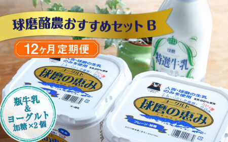 【12ヶ月定期便】球磨酪農おすすめセットB(瓶牛乳&ヨーグルト加糖×2個)