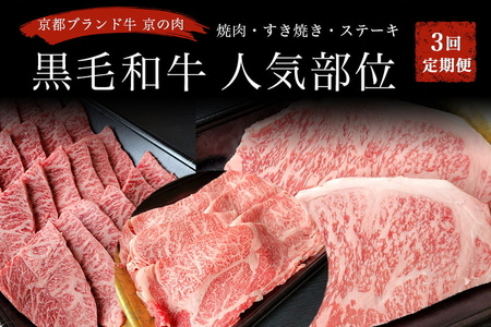 1回目:京の肉黒毛和牛 特選焼肉 500g 2回目:京の肉黒毛和牛 特選すき焼き用 500g 3回目:京の肉黒毛和牛 サーロインステーキ 150g×2枚