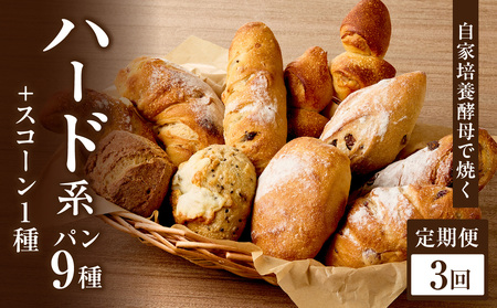 【全3回定期便】選べる回数!自家培養酵母で焼くハード系パン9種+スコーン1種セット!065-04-T02
