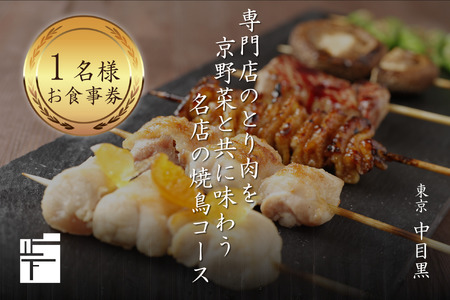 専門店のとり肉を京野菜と共に【東京中目黒】で味わう1名様焼鳥コースお食事券 064-08