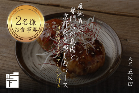 専門店のとり肉を京野菜と共に【東京五反田】で味わうペアリング4杯付き2名様焼鳥コースお食事券 064-13