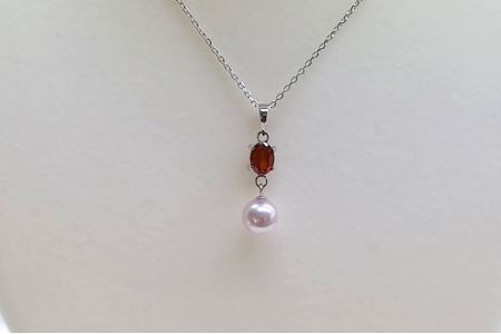 【090-09】上質アコヤ真珠8.0ミリ 1ctガーネット付きペンダント