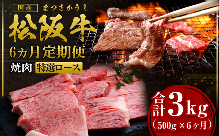 【12月末受付終了】 松阪牛焼肉(特選ロース)500g 6ヶ月定期便【2026年4月~9月発送】 国産松坂牛 三重県 多気町 SS-2911