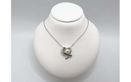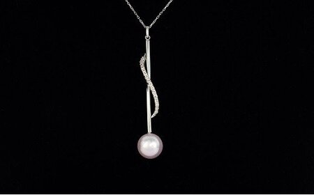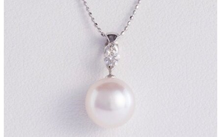 あこや真珠9mm、トップ金具K18WG製、チェーンK18WG製、スライド式45cm、ダイヤ0.10ct(ダイヤが揺れます)、当社保証書付、ケース付