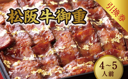 4~5人前の御重との引換券 最高等級A5ランクの松阪牛サーロインを特製のタレで焼き上げご飯の上に敷きつめた御重(1段) 松阪牛サーロイン: 450g ごはん : 800g