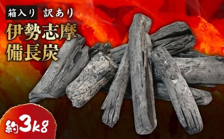 先行受付の返礼品です。 2026年3月以降、順次発送いたします。 箱入り 伊勢志摩備長炭 約3kg 厚手のビニール袋に密閉し、湿度の低い場所で保管してください。 できるだけ、3~6ヶ月で使い切ることをお勧めします。
