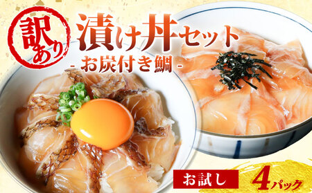 お炭付き鯛 4種お試しセット 95g×4パック (各1種:醤油漬け・炙り醤油漬け・あおさ醤油漬け・炙りあおさ醤油漬け) 【賞味期限】製造後180日 ※解凍後はお早めにお召し上がりください。 ※骨がある場合がございます。