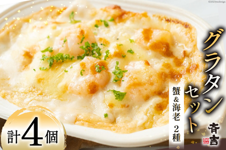 たっぷり蟹グラタン・海老とマッシュルームのマカロニグラタン(2種×各2個) [斉吉商店 宮城県 気仙沼市 20563995]