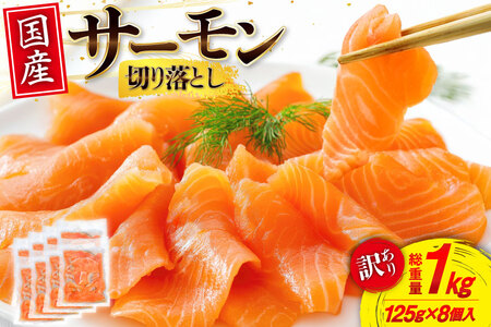 訳あり 国産 サーモン 切り落し おさしみ用 125g×8p 計1kg 個包装 [足利本店 宮城県 気仙沼市 20565636]
