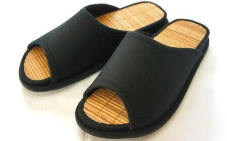 D型セノーテニット竹炭スリッパ ブラック<紳士用Lサイズ(約27.5cmまで)> 【04301-0360】