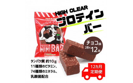 ハイクリアー プロテインバー mini BAR チョコ味 1箱(2本入り×12袋)×12か月【18109】