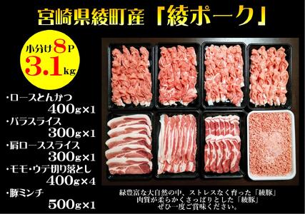 綾ポークバラエティー3.1kg(小分け8パック)セット(0057-019)