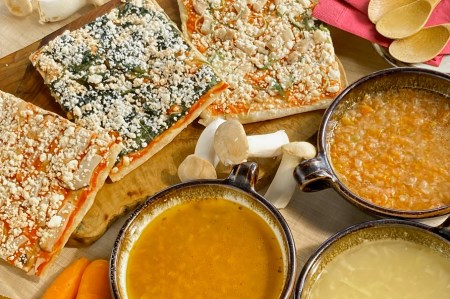 ■スープ 綾野菜のミネストローネ 220g レンズ豆のスープ 220g ヒヨコ豆のスープ 220g ■ピザ 天然酵母ピザ(綾豚&長ネギ又は綾豚&玉ねぎ) 1枚 綾野菜の天然酵母ピザ 2枚