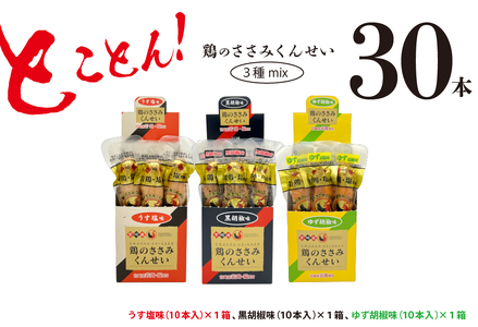 鶏のささみ くんせい 3種 セット 30本 うす塩・黒胡椒・柚子胡椒 食べ比べ おつまみ スモーク チキン 燻製
