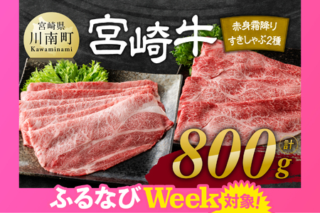 【ふるなびWEEK対象】【令和7年12月発送】宮崎牛赤身霜降り すきしゃぶ2種 800g FN-Limited-PR すき焼き 牛肉