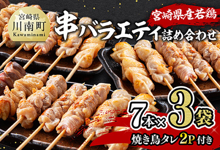 鶏肉 宮崎県産若鶏串バラエティ詰め合わせ(各7本×3袋)+焼き鳥タレ2P 鶏肉 セット