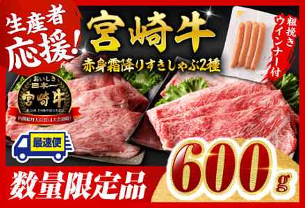 【令和7年11月発送分】宮崎牛 赤身・霜降りすきしゃぶ2種600g+粗挽きウインナー【 肉 牛肉 】