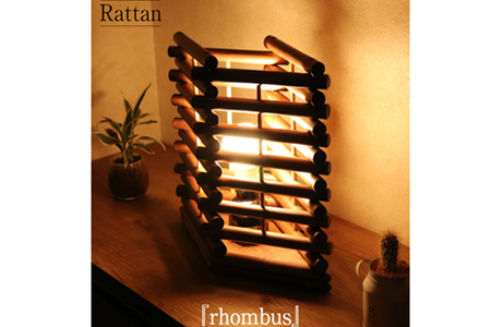 間接照明『ロンバス』 サイズ(約):幅31センチ×奥行15センチ×高さ28.5センチ/材質:籐※土台:ランバーコア材、シナ合板、桧集成材/仕様・定格電源:AC100V(50/60Hz)・付属電球:LED電球(20W形)・最大使用W数:100W・口金サイズ:E26・コード長:約190cm・ロータリースイッチ付き/表面加工:ウレタン樹脂塗装