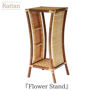 籐の花台 サイズ(約):幅37㎝(脚部)、奥行30㎝、高さ75㎝ 重さ:(約)4kg、 材質:籐、ランバーコア材(上下天板下地) 表面加工:ウレタン樹脂塗装