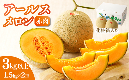 先行予約≪期間限定≫hiro君ハウスのアールスメロン(赤肉)計3kg以上(化粧箱入り) フルーツ 果物 国産_T022-0011