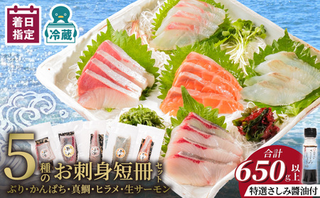 お刺身 短冊 5種セット 計650g以上 特選刺身醤油付き N019-YD0235