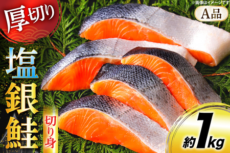 鮭 厚切り 塩銀鮭 A品 切り身 約1kg [安田 宮崎県 日向市 452061467]