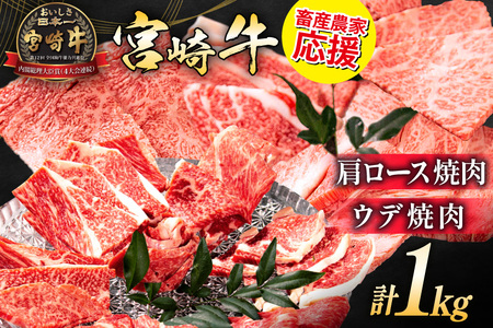 【畜産農家応援】 牛肉 宮崎牛 肩ロース焼肉 ウデ焼肉 計1kg [ミヤチク 宮崎県 日向市 452061596]