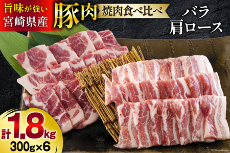 宮崎県産 豚バラ 肩ロース 焼肉 食べ比べ各300g×3 計1.8kg [甲斐精肉店 宮崎県 美郷町 31as0110]