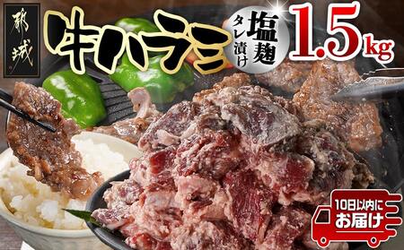 牛ハラミ 塩麹タレ漬け1.5kg≪みやこんじょ特急便≫_14-3305-Q_(都城市) 味付き 牛肉 真空 小分け