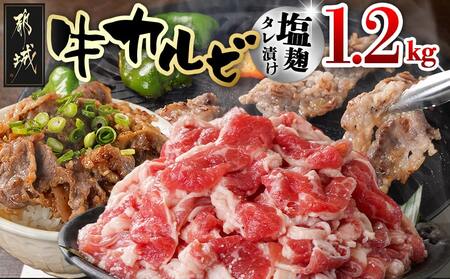 牛カルビ 塩麹タレ漬け1.2kg_LG-3326_(都城市) 味付き牛カルビ 300g×4パック 真空 小分け 1200g