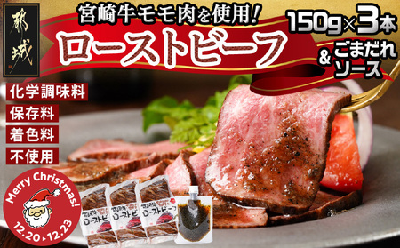 【☆クリスマス☆】宮崎牛ローストビーフ150g×3本セット(ごまだれステーキソース付き)≪12月20日~23日お届け≫_AD-J901-OJX