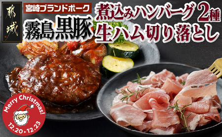 【☆クリスマス☆】霧島黒豚煮込みハンバーグ2種&生ハム切り落としセット≪12月20日~23日お届け≫_AA-2811-OJX