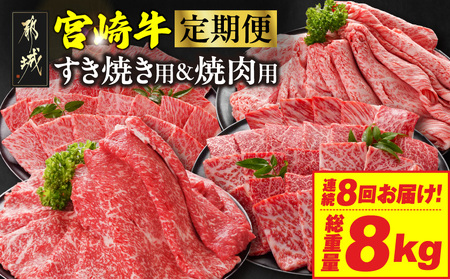 ≪8回連続お届け≫宮崎牛赤身霜降り食べ比べ定期便M(総重量8kg)_T136-8-N201_(都城市) 宮崎牛 スライス 焼肉 2種セット 肩ロース ウデ又はモモ