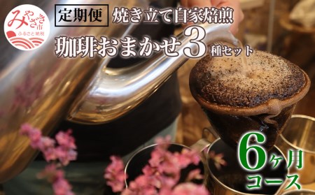 定期便 焼き立て 自家焙煎 珈琲豆 おまかせ 3種類セット 6ヶ月コース
